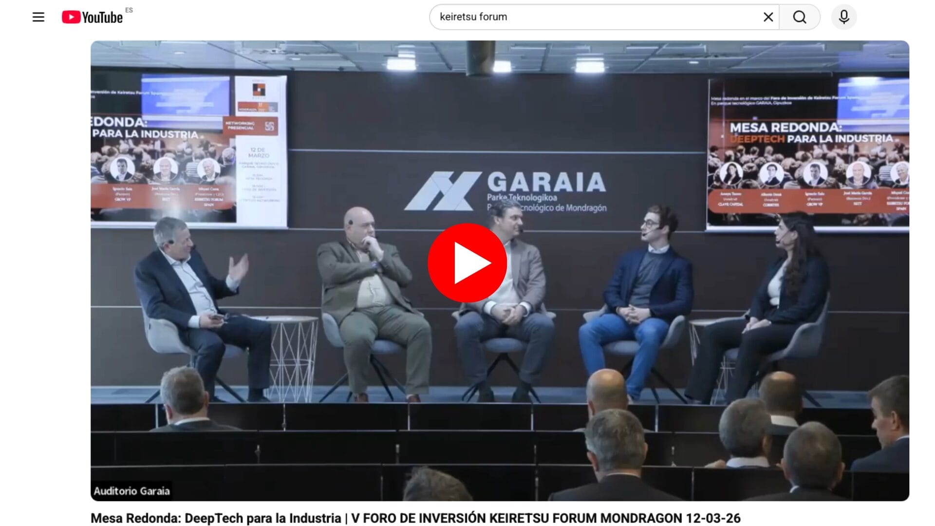 En el marco de la quinta edición del Foro de Inversión de Keiretsu Forum y Corporación Mondragón, celebrada el 12 de marzo de 2026 en el Parque Tecnológico Garaia (Gipuzkoa), tuvo lugar la mesa redonda “DeepTech para la industria”, previa a la presentación de startups ante inversores. La sesión reunió a perfiles de referencia del ámbito inversor e institucional para analizar cómo transformar ciencia e innovación en empresas industriales escalables, competitivas y con impacto real en el mercado.